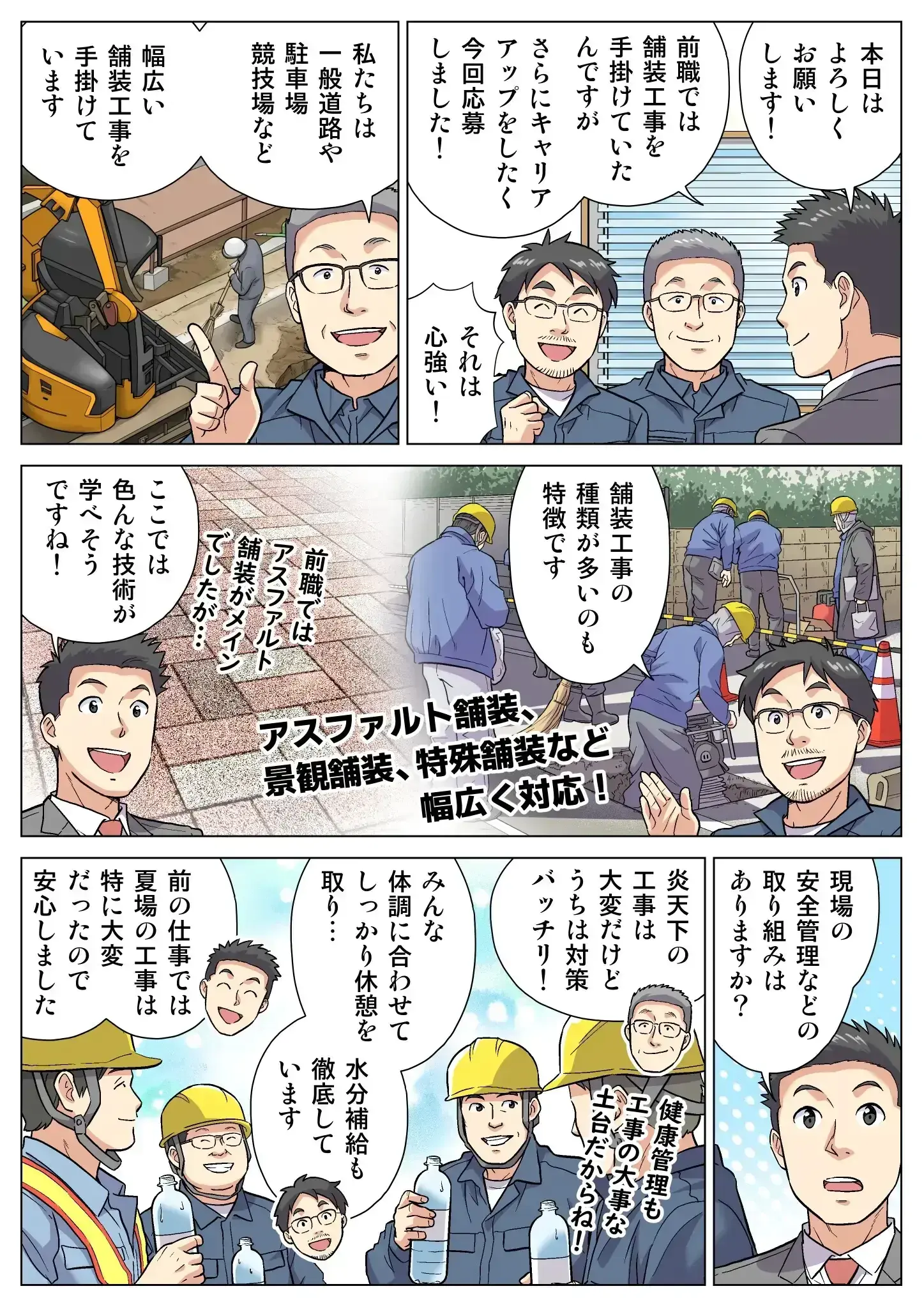 神奈川県内の舗装工事・外構工事において、現場の作業全般を担います。道路の路盤づくりやコンクリート打設、ブロック積み、アスファルト舗装など、手作業と機械作業をバランスよくこなします。最初は道具の使い方からスタート。先輩の指導のもとで、少しずつ経験を重ねていける環境です。仕事は公共工事が中心で、街づくりに直接関わるやりがいがあります。